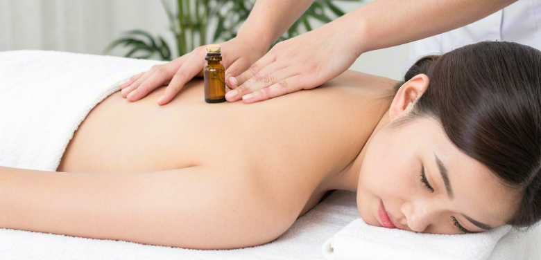 使用精油进行背部按摩,促进肌肉放松、舒缓压力,带来身心放松和舒适感